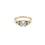 14K Yellow and White Gold Celtic Lab Diamond and Natural Emerald Engagement Ring D-1.00ct E-0.24ct