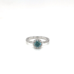 14k White Gold Treated Blue Diamond and White Diamond Halo Engagement Ring BD-0.45ct D-0.24ct SI G-H